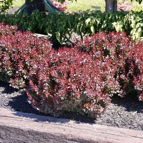 https://proxima.net.ua/barbaris-tunberga-bagatell.htmlФорма: Медленнорастущий карликовый многоствольный кустарник шарообразной формы высотой 40 см. Оригинальный окрас листьев в багряно-красный цвет с медным отливом. Скорость / сила роста: 5-10 см в год, в сравнении с другими декоративными формами барбарисов относительно медленнорастущее растение, что в современном садоводстве является больше плюсом чем минусом. Побеги: коричневые, гранёные, с одиночными шипами, как у всех барбарисов тунберга, молодые побеги желто-зелёные. Ранней весной проводится санитарная обрезка с удалением обмерзших, слабых, старых побегов. Листья: форма листьев - очерёднорасположенные, яйцевидные. Оригинальный окрас листьев в багряно-красный цвет с медным отливом, осенью становятся ярко-красными. Вид цветов: простые, белые цветы, которые прячутся среди листьев в середине весны, после чего украшают барбарис ярко-красными плодами, которые висят на голых веточках всю зиму. Время цветения: в мае белыми цветками, собранными в соцветия по несколько штук. Плоды: кораллово-красные, эллиптические, диаметром до 1 см., созревают в сентябре-октябре и держатся на протяжении всей зимы. Отношение к свету / инсоляция: Наиболее эффектная окраска барбариса Багатель достигается на солнце. Но и в местности, где на протяжении всего дня тень, барбарис может потерять свою темно-фиолетовую окраску листьев и становится слегка зеленоватым. Корни: хорошо разветвлённая поверхностная корневая система, но отдельные корни глубокие, с большим количеством тонких корней.