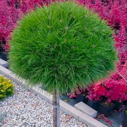 Оригинальный вечнозеленый, куст на штамбе, округлой формы кроной, в десятилетнем возрасте достигает в высоту 0.7м и 1м в диаметре, имеет игольчатую, удлиненную, темно-зеленую хвою, за счет того что молодые хвоинки намного короче и светлее привлекает к себе внимание любителей декоративных растений и посетителей сада. Преимуществом этого растения является ее декоративность в течение всего года, выносливость, неприхотливость в выращивании и морозостойкость. Сосна горная Варелла очень светолюбива, любит расти на открытых местах. Сосна предпочитает супесчаную, легкую, свежую, кислую почву. Засухоустойчива. Умеренный полив.