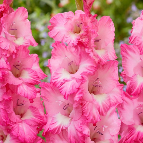 Гладиолус Violet King – величественный сорт с яркими розово-фуксиевыми цветками, которые привлекают внимание насыщенным окрасом и элегантной формой. Нижний лепесток выделяется белым пятном, что добавляет выразительности каждому бутону. Это растение станет украшением цветника, миксбордера или букетной композиции, ведь его соцветия сохраняют свежесть в срезанном виде до двух недель.