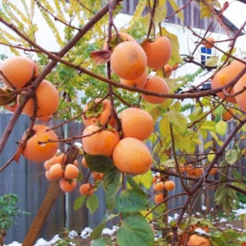 Очень интересный сорт хурмы. Имеет на одной ветке 3 разных по виду плода:
