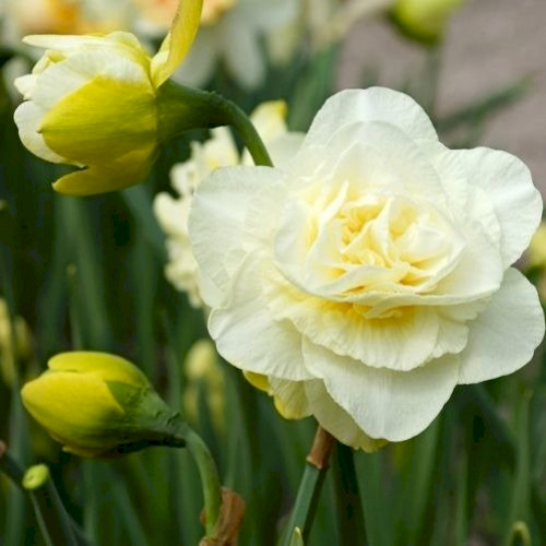 Нарцисс Obdam (Обдам) — это изысканный представитель махровых нарциссов, который украсит ваш сад или цветочную композицию своей нежной кремово-белой палитрой. Этот многолетний луковичный цветок достигает высоты до 35 см и выделяется крупными цветами пионовидной формы, диаметр которых достигает 10-11 см. По мере распускания цветок светлеет, приобретая тонкие лимонные оттенки, что добавляет ему особого шарма. Приятный и ненавязчивый аромат нарцисса Obdam станет изюминкой вашего весеннего сада.