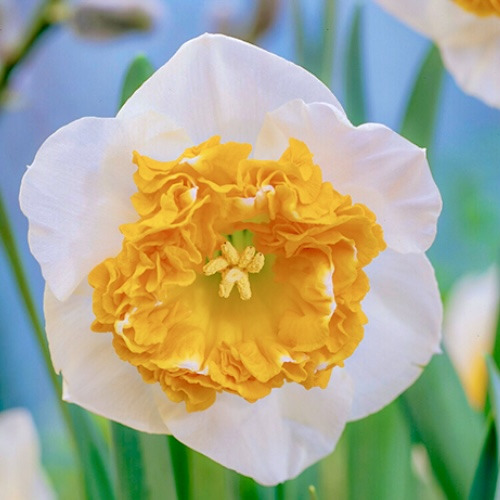 Нарцисс Czardas — это сорт, который сочетает в себе элегантность форм и выразительность цветов. Его цветы поражают своей утончённой структурой и ярким контрастом между белоснежными лепестками и гофрированной оранжевой короной. Эта особенность делает его идеальным выбором для тех, кто ищет яркий акцент в своём саду или на клумбе.