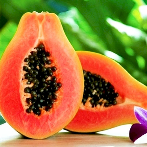 Папайя – это экзотический фрукт с ароматной и вкусной мякотью. Похож фрукт на дыню или продолговатую тыкву, отсюда и другое название «дынное дерево». Ранний и продуктивный сорт "Red Lady" для выращивания в открытом грунте в южных садах и контейнерного выращивания на севере. "Red Lady"- это самоплотный гибрид, дающий плоды весом до 1 кг. Плод представляет собой продолговатую папайю оранжево-красного цвета.