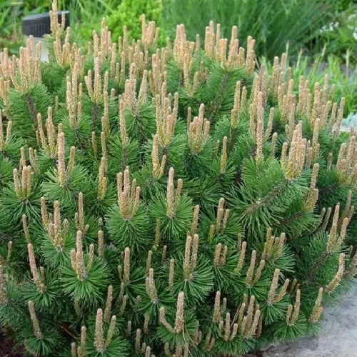 Форма: Привитой декоративный сорт сосны горной. Эта форма сосны горной найдена в Швейцарии сравнительно недавно и пока не имеет такой популярности, как многие другие ее собратья, но истинно увлеченные любители редких хвойных растений должны приобрести ее для своей коллекции. Миниатюрный, подушковидный, круглый, компактный кустарник. Первые 10 лет своей жизни имеет плотную, округлую, несколько нерегулярную форму. Достигнув высоты 30 см, она начинает «расползаться» в стороны, откуда и получила свое название (холм, бугорок). Хампи - настоящий подарок для любителей карликовых растений и обладателей небольших каменистых садиков.