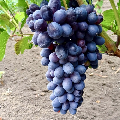 Грозди цилиндрической или цилиндро-конической формы, средней плотности, иногда рыхлые, массой 200-300 г. Ягоды темно-синие, удлиненно-овальные, массой 3-4 г, покрытые равномерным восковым налетом. Кожица плотная, но при потреблении не ощущается, мякоть — мясистая, не слизистая, сочная. Вкус гармоничен, без ощутимого лабрюшного привкуса, с содержанием сахара до 19–20% и кислотностью около 6 г/дм³.