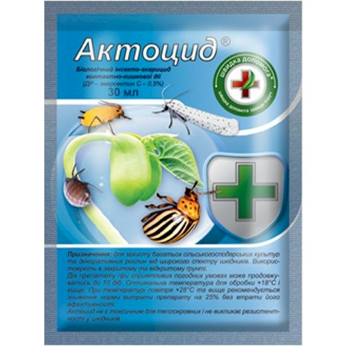 Актоцид – біологічний препарат для боротьби із шкідниками сільськогосподарських культур та декоративних рослин. Використовується як в закритому, так і у відкритомуґрунті. Основною діючою речовиною є abamectin. Дія препарату виявляється в загибелі комах-шкідників внаслідок їх паралізування. Аbamectin потрапляє в організм комах через зовнішні покриви під час обробки або після поїдання ними оброблених рослин. Для бджіл та інших корисних комах препарат є шкідливим лише під час обприскування і до моменту його висихання на листі. Актоцид® є нешкідливим для людини та усіх теплокровних тварин, обробки ним можна проводити до моменту збору врожаю.