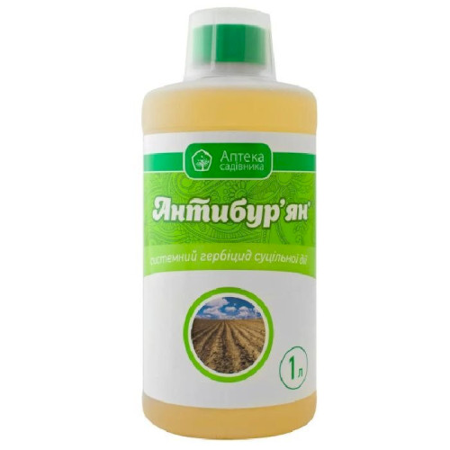 Антибур'ян 1000 мл - системний гербіцид суцільної дії, для знищення однорічних та багаторічних бур'янів, на землях до посіву (висадки) культури, після збирання врожаю та землях несільськогосподарського призначення.