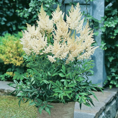 Астильба Diamant – елегантний багаторічник із великими, повітряними суцвіттями сніжно-білого кольору. Цей декоративний сорт чудово впишеться в затінені квітники, міксбордери та композиції з іншими багаторічниками, прикрашаючи сад тривалим цвітінням.