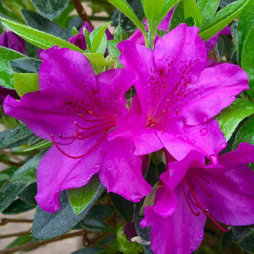 Азалія Blue Danube - морозостійкий сорт з Японії. Кущ виносить зниження температури до -27 градусів, що є відмінним показником серед родичів. Азалія Блу Дануб цінується також за чудове цвітіння протягом 3 тижнів. З травня по червень кущик заввишки до 50 см прикрашає розсип неоново-фіолетових квіток. Вони так густо покривають пагони, що виглядають як величезний екзотичний букет. Найкраще азалії виглядають у композиції з хвойниками чи вересками. Гарні вони як декор вазона або живоплоту.