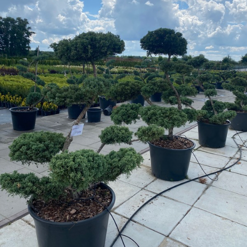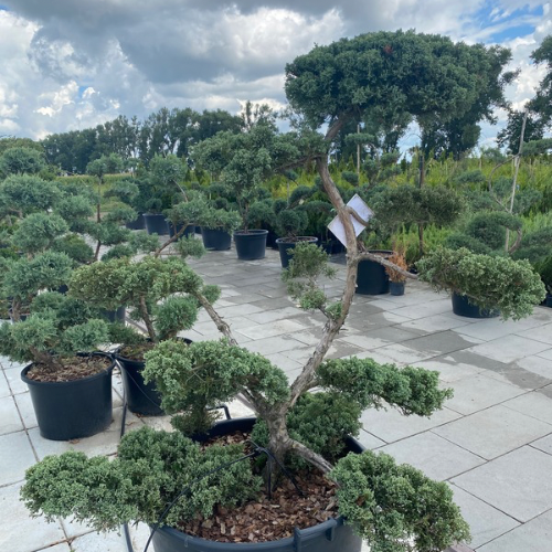 Хвоя переважно лускоподібна, сріблясто-блакитна. Шишки численні, сизо-зелені.