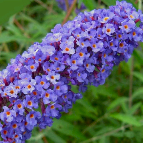 Цвіте рясно в кінці липня-вересні на пагонах поточного року. Квіти яскраві, блакитні, зібрані в волоті, завдовжки до 20 см, дуже ароматні, залучають в сад комах-запилювачів і метеликів.