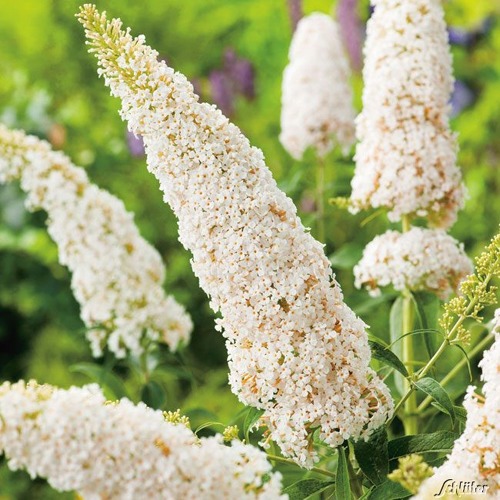 Квітки формуються на кінцях пагонів поточного року в прямостоячі великі, до 30-50 см довжиною, білосніжні суцвіття. Квіти виділяють приємний медовий аромат, що нагадує запах гіацинтів і привертають тим самим, комах-запилювачів і метеликів. Час цвітіння з липня по вересень.
