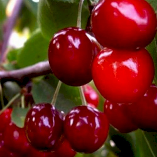 Плоди середнього або вище середнього розміру, 6-8 г. Форма плодів округло серцевидна, злегка плеската. Черевний шов невеликий, широкий. Воронка глибока, широка. Вершина плодів притуплена. Шкірочка темно-червона з більш світлими підшкірними крапками, майже чорна, середньої товщини, блискуча. Плодоніжка довга, середньої товщини. М'якоть буро-червона, щільна, соковита. Смак дуже хороший, кисло-солодкий, десертний. Кісточка велика, відділяється.