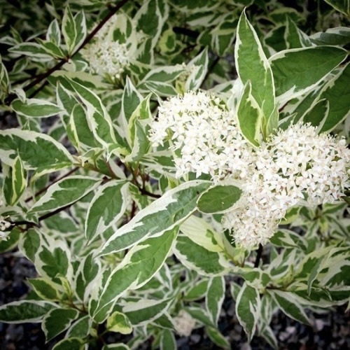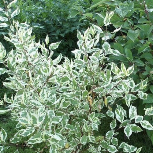 Дерен білий "Elegantissima" — це вражаючий листопадний кущ, який ідеально підходить для створення живих огорож, оформлення садових доріжок та озеленення паркових зон. Цей сорт дерена вражає своєю декоративністю та простотою в догляді.