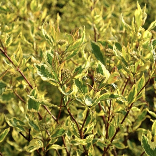 Дерен білий Spaethii — один із найпопулярніших видів кущів, який часто використовують для озеленення садів і парків. Цей листопадний кущ відрізняється широкою, розкидистою кроною та коричнювато-червоними стеблами, які особливо помітні взимку. Листя дерену мають зелений колір із нерівномірною золотистою каймою та дрібними плямами, що створює ефект золотистого сяйва протягом усього вегетаційного періоду. Навесні листя розпускаються з оранжево-мідним відтінком, а восени іноді набувають червоно-пурпурового кольору.