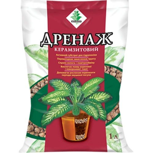 Дренаж керамзитовий – допоміжний компонент для висадки рослин у ємності. Являє собою невелику фракцію керамзиту. Він насипається на дно для стікання зайвої води і запобігання її застоювання в ємності.