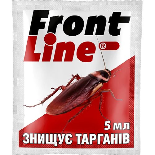 Front Line – препарат, призначений для знищення тарганів. Потрапляє до організму комах через хітиновий покрив або травну систему та призводить до їх загибелі впродовж 8 годин. Тривалість дії препарату - близько 2 тижнів після обробки. Використання є нешкідливим для людини та теплокровних тварин після висихання розчину.