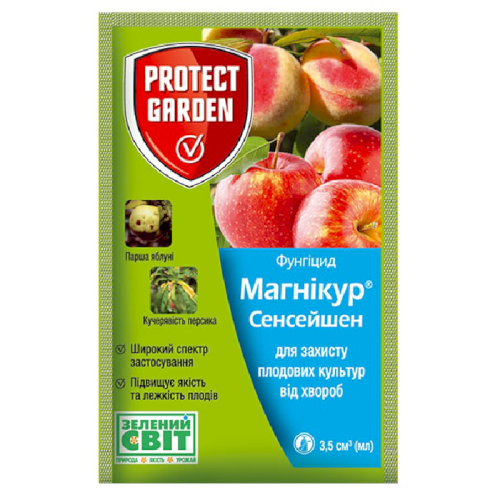 Фунгіцид комбінованого системної дії для захисту і профілактики плодових дерев від патогенних захворювань, з ефектом тривалого захисту і термінів зберігання навіть плодів.