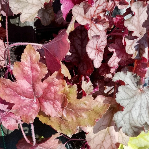 Гейхера "Феєрверк" Feuerwerk – надзвичайно декоративний багаторічник із яскравим строкатим листям, який здатен стати ефектним акцентом у будь-якому саду. Листя зеленувате з яскравими прожилками бузкового або бордового відтінку по краю створює унікальну палітру. Квітки дрібні, дзвоникоподібні, піднімаються на високих квітконосах до 45 см, додаючи легкості та повітряності композиції.