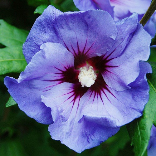 Гібіскус 'Oiseau Bleu' яскравий представник роду гібіскус (Hibiscus) і сімейства Мальвових. Ця рослина переважно чагарникова, листопадна, до 2 м у висоту. Листя великі, зелені, по черзі розташовані. Для цієї рослини характерна наявність великих квіток синьо-фіолетового кольору близько 10 см в діаметрі, які утворюють пишну корону і цвітуть з червня по вересень.