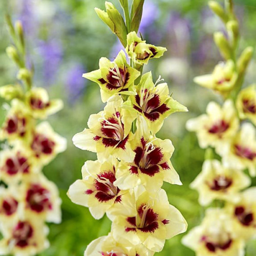 Гладіолус Etty – компактний сорт з яскравим цвітінням. Розрахований для декорування невеликих клумб, альпійських гірок, бордюрів, рокаріїв. Рослина випускає мечовидне соковите листя і квіткову стрілу з 12-15 бутонами. Розпускаються бутони у липні-вересні. Воронкоподібна квітка, діаметром 5-12 см, кремово-жовта з бордово-червоними плямами в центрі. Можливе вирощування у горщику для прикраси балкона, тераси, світлої частини двору. Сорт добре висаджувати групою з дистанцією 20-30 см. Висота квітконоса 50-80 см, завширшки 10 см.
