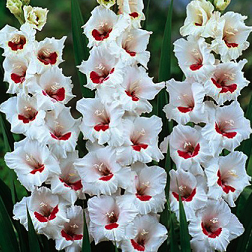 Вишуканий білий гладіолус прикрашатиме ваш сад, виділяючись на тлі інших рослин і надаючи вашому квітнику шарму та романтизму.