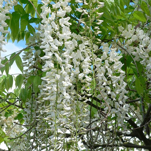 Пік декоративності гліцинії припадає на квітень-червень. Її ароматні суцвіття зібрані в кисті довжиною 15-20 см. Бутони бувають білими, блакитними, пурпуровими, бузковими, будь який їх відтінок тільки підкреслює яскрава зелень листя. Насіння культури - непоказні сіро-жовті боби, для людини отруйні.