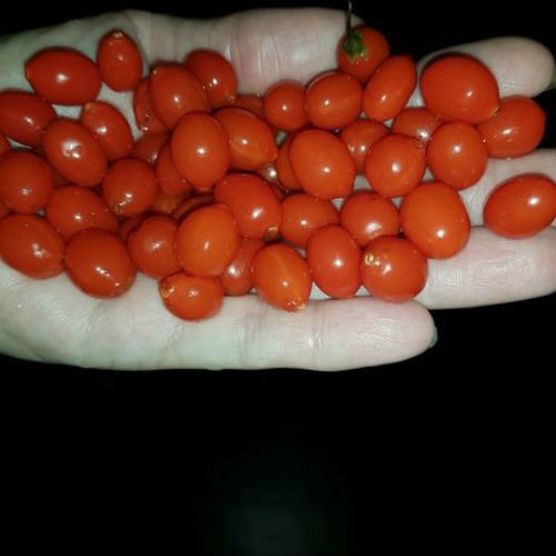 Плодоношення на 2 рік, для перехресного запилення висаджуєте кілька різних сортів. Плоди до 2.5 см завдовжки і до 3 мм в діаметрі, насичено червоного забарвлення.