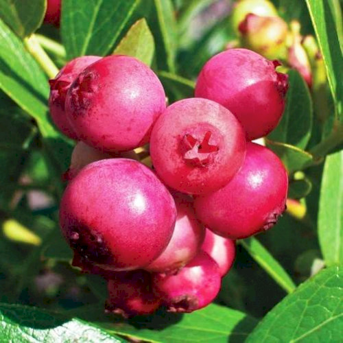 Лохина "Pink Lemonade" – дитина від північноамериканських батьків – Еші, Дарроу та щиткової. Ягоди середніх розмірів, масою 1,5-1,8 г, округлої форми з незвичайним забарвленням для лохини. Ягоди пофарбовані в рожевий колір, доповнений традиційним сизим нальотом.
