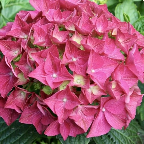 Гортензія крупнолистова 'Alpengluhen' – це декоративний чагарник, який ідеально підійде для створення яскравих акцентів у саду. Сорт привертає увагу своїм насиченим квітами і красивим листям. Гортензія Alpengluhen може досягати висоти від 1 до 1,5 метра і має компактну, округлу форму крони. Листя велике, блискуче і темно-зелене, що надає рослині привабливого вигляду навіть після закінчення цвітіння.