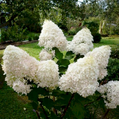 Декоративна, з дуже великими округло-широкопірамідальними суцвіттями з великих вершково-білих квіток, що рожевіють до осені.