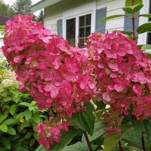 Гортензія метельчата Magical Fire – сучасний сорт, який вражає розкішним цвітінням та змінною палітрою кольорів. Її великі суцвіття довжиною 30–35 см складаються переважно зі стерильних квіток, що розкриваються ніжно-білими, поступово набувають рожевого відтінку і восени сяють пурпурово-червоним. Завдяки такій трансформації кущ виглядає надзвичайно декоративно протягом усього сезону, створюючи ефект «палаючих» квітів.