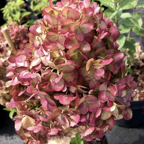 Рослина формує щільний, добре розгалужений кущ заввишки до 55–60 см і шириною до 80–95 см. Пагони міцні, не розвалюються навіть під вагою численних квітів. Суцвіття конусоподібні, компактні, завдовжки до 20 см. Цвітіння починається в кінці червня — липні і триває до перших заморозків. Спочатку квітки мають салатовий відтінок, поступово стають білими, ніжно-рожевими, а на завершення сезону набувають виразного червоного тону. Така динаміка кольору додає текстурності та глибини садовим композиціям.