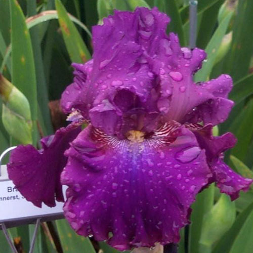 Ірис бородатий Brazenberry (Брейзенберрі). Стандарти - темно-бузкові, круживні. Фоли - фіолетові з темними розводами. Гофровані.