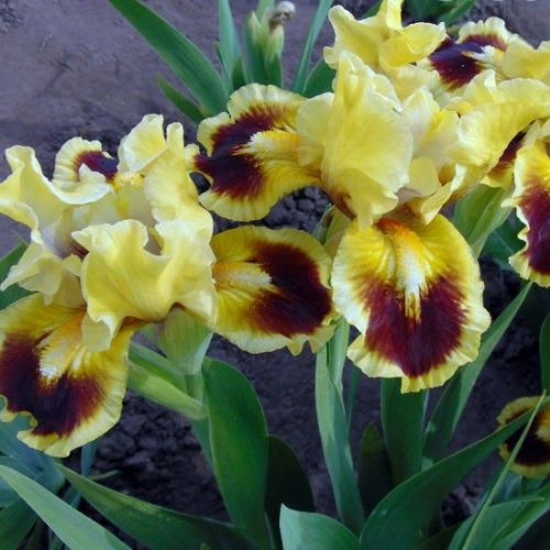 Ірис Джазаматаз – це непересічна мелодія жовтого, рубінового і білого кольорів. Є такою ж незвичайною, як і поєднання хіп-хопу з джазом – музики, що дала назву цьому сортові. Гофрований красень сяє лимонними стандартами. Зовнішній ряд пелюсток – темний, коричнево-рубіновий, з яскраво-жовтими плічками і лимонною півсантиметровою обвідкою. Біля нігтика фолів – коротке грубе штрихування тону білих борідок. Ірис Jazzamatazz – носій густих борід з жовтою серединкою і горлечком.