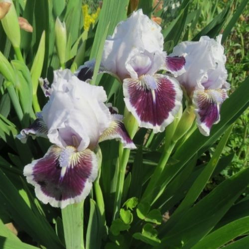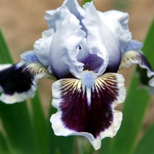 Група: SDB бордюрний (стандартний карликовий бородатий), гофрований. Тип: Амена. Сезон цвітіння: La. Висота 30-45 см. Квітки ароматні, з легким мускусним запахом. Забарвлення стандартів матове, біло-блакитне. Забарвлення фоллів - темно-пурпурне (синьо-чорне) з акуратною білою облямівкою і білими променями, що відходять від борідок. Борідки від біло-блакитного до біло-фіолетового кольору, золоті в горловині. Стайли біло-блакитні.