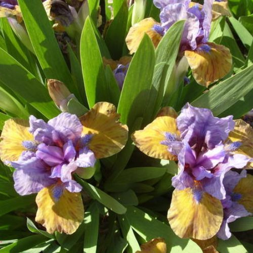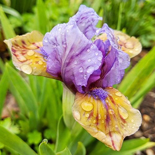Ірис Уот Егейн – рясний сорт, що зацвітає двократно. Він проводжає весну та зустрічає осінь жовто-голубими квітами, які густо увінчують кущ. Карлик з бородою відтінку гліцинії, оточений ширяючими гірчично-жовтими фолами. Іноді вони покриваються блідо-пурпуровими плямами та/або краями, що темнішають. Стандарти синьо-голубі, з виразним додаванням пурпуру від нігтиків. Гребені над приймочкою є бузковими, з блакитними краями та ліловою повздовжньою жилкою.