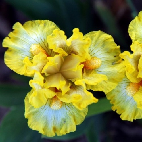 Сезон цвітіння: квітень-травень. Сорт яскравий, гофрований, з красивою формою пелюсток. Квітки з легким солодким ароматом. Стандарти зеленувато-жовті, з блідим центром. На зеленувато-жовтих Фолля навколо борідок білувата пляма, в горловині Фолля - зеленувато-коричнева пліката. Борідки білі, з жовто-помаранчевими кінчиками. Стайли жовті. Висота квітконоса 30 см