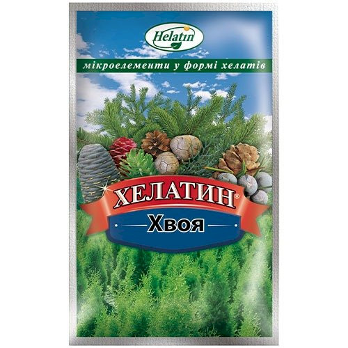 Добриво для хвойних рослин Хелатин Хвоя це мінеральне добриво для хвойних рослин, що містить всі необхідні для рослини макро- і мікроелементи в доступних формах. Препарат покращує фізіологічні властивості хвої, підвищує стійкість до різних бактеріальних захворювань і несприятливих кліматичних умов.