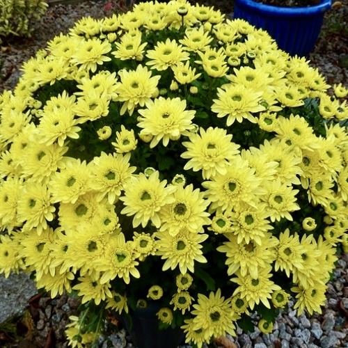 Хризантема Blanchett Yellow — яскравий осінній акцент, який зберігає декоративність навіть у похмурі дні. Цей сорт належить до дрібноквіткових багаторічних хризантем родини айстрових. Рослина формує компактний, кулястий кущ із густою темно-зеленою, ароматною листвою, що майже повністю зникає під масивом квітів під час цвітіння.