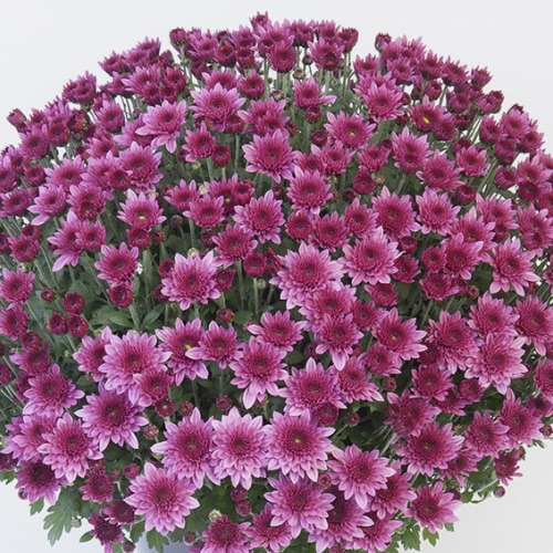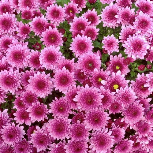 Хризантема Бланшет Пінк — це справжнє осіннє диво, яке дарує саду ніжність і колір у найпохмурішу пору року. Компактний кущ заввишки 50–60 см формує ідеально округлу крону, яка тримає форму без підв’язування. З середини осені (жовтень) до перших морозів він густо вкривається рожевими напівмахровими квітами діаметром до 5 см. Щільність суцвіть така висока, що листя майже не видно — лише рожеве “облако” на темно-зеленому тлі.