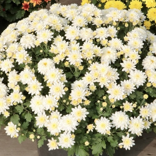 Хризантема Blanchett White — дрібноквітковий сорт осіннього цвітіння, що поєднує декоративність, витривалість і акуратну форму куща. Ця багаторічна рослина з родини айстрових формує щільну кулясту крону висотою до 50 см із темно-зеленим листям. Вона однаково добре підходить для вирощування в контейнерах, вазонах, на балконах і у відкритому ґрунті — як прикраса країв клумб або окремих зон саду.