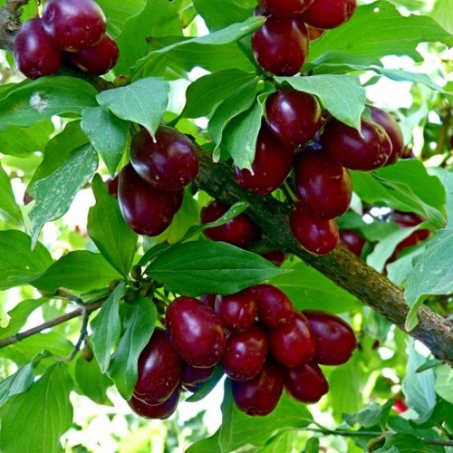 Ягоди кизилу дозрівають до вишневого – червоного, чорного кольору. Серединка соковита з кислинкою, багряного кольору. Кизил має чудові смакові якості, має корисні лікувальні властивості.
