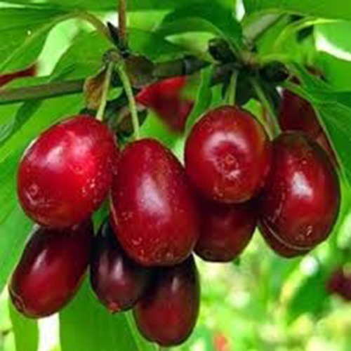 Плодоношення щорічне, стабільне. Плоди одномірні, масою 4-5 г, грушоподібні, красиві, з блискучою шкіркою червоно-чорного кольору. М'якуш щільний, ніжний, темно-червоний, більш світлий біля кісточки, зі специфічним кизиловим ароматом. Кісточка невелика, веретеноподібна.