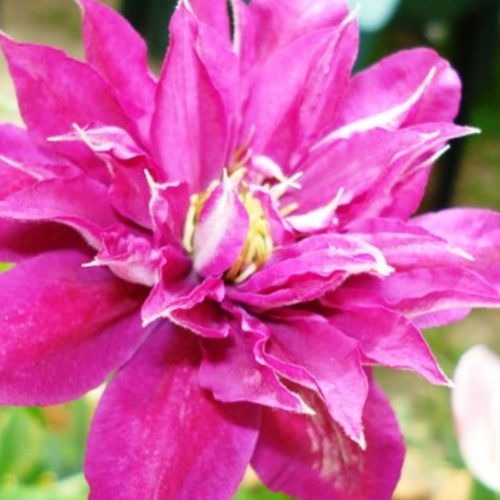Перше цвітіння махровими квітами розміром15см. Повторне цвітіння в серпні, рясне, одиночними квітами. Сорт цікавий, адже на квітучих пелюстках можуть бути розфарбовані пелюстки в зелено- червону смужку. Група обрізки 2. Сорт зимостійкий.