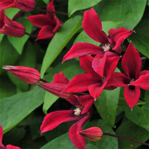 Червоний клематис "Gravetye Beauty" — один з найстаріших сортів свого виду. Його вивів понад 100 років тому французький селекціонер Франциско Морель. Рослина вийшла стійкою до захворювань, морозостійкою і довговічною. Клематис Гравіті Б'юті відноситься до 3 групи обрізки. На зиму його пагони потрібно сильно укорочувати, залишаючи всього 10-15 см від коренів. Сорти клематисів групи Texensis, до яких відноситься і Gravetye Beauty за сезон виростають до 2-4 метрів. Вони міцно чіпляються за навколишні опори, будучи прекрасним рішенням для вертикального озеленення. Квіти насичено червоні, іноді з пурпуровим або рожевим відтінком, за формою нагадують тюльпани. Пелюсток 4-6, вони вигнуті назовні, а сам бутон сильно витягнутий.