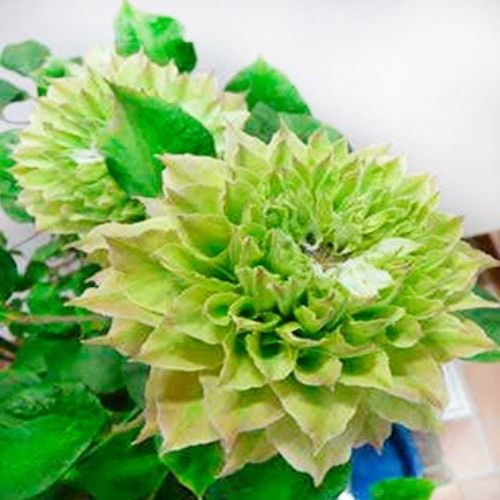 Клематис Сен Но Кейз - японський, оригінальний сорт з повними квітками діаметром 11-14 см складається з понад 60 пелюсток. Пелюстки ланцетні, загострені, злегка гофровані з верхівкою спрямованою вниз, бутони світло зелені з рожевим відтінком верхівка, розквітаючи біліє. У повному розквіті білі, іноді з зеленою смужкою по центру, з зеленим відтінком по краю і рожевим відтінком. Пелюстки з двох сторін однакового кольору. Часто під квітками знаходяться по 6-12 під квіток, розташованих на довгих листових хвостиках. Тичинки кремові помітні тільки при повному цвітінні. Цвіте на торішніх пагонах, майже з самого початку відростка, з другої половини травня до червня. Листя темно-зелені, прост,і або поділені на три частини. Молоді пагони пурпурові. Досягає висоти 1,5 м. Чіпляється листовими хвостиками.