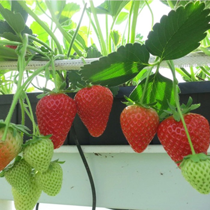 Кущ сильний, середніх розмірів, лист широкий, піднятий, темно зелений, глянцевий, схожий на сорт "Альбіон". Квітки великі, білі, двостатеві. Квітконоси потужні, високі.