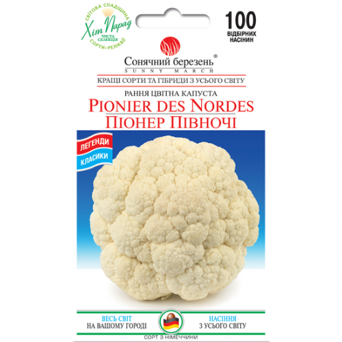 Цвітна капуста Піонер Півночі – один із найраніших сортів, який вирізняється стійкістю до холодів та стабільною врожайністю. Виведений у північній Німеччині, він чудово пристосований до вирощування як у відкритому ґрунті, так і під плівковими укриттями, що робить його універсальним для різних кліматичних зон.