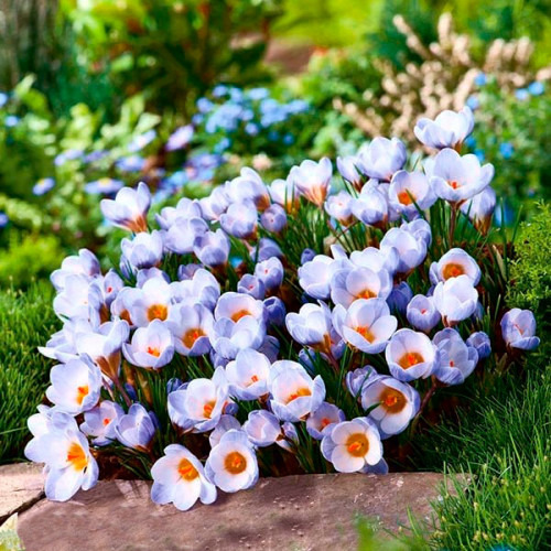 Крокус Ботанічний - рослини цієї групи досягають у висоту 8 см. Весною, буквально з-під снігу, з'являються дрібні квіти різного відтінку і забарвлення, але в основному це жовті і блакитні з виразно помітними рильцями. Ботанічні крокуси відрізняються не тільки своїм рясним цвітінням, а й запашними квітками. Період цвітіння у всіх може бути різний, залежно від кліматичних умов, і починається він з кінця лютого до початку квітня, як тільки зійде сніг.